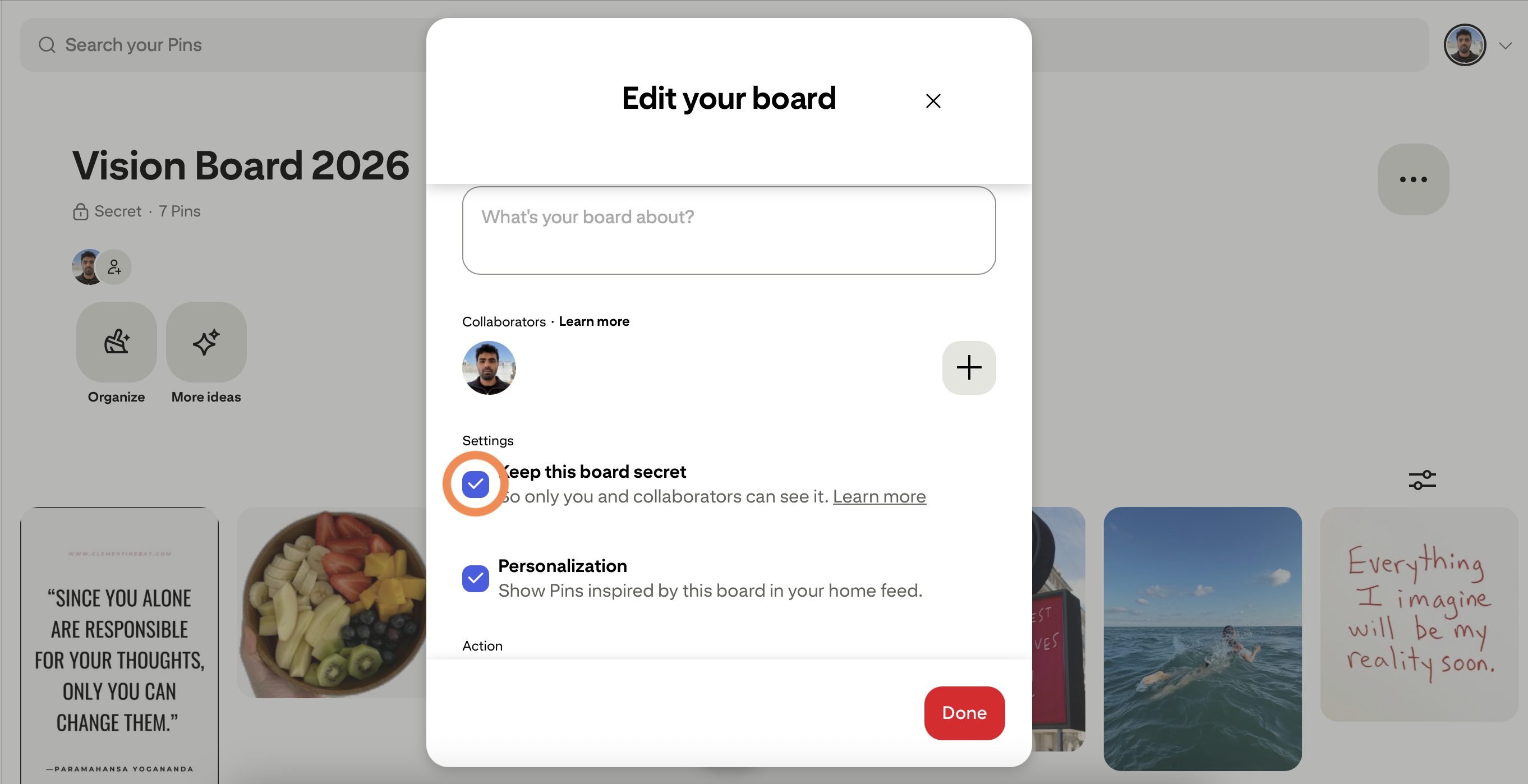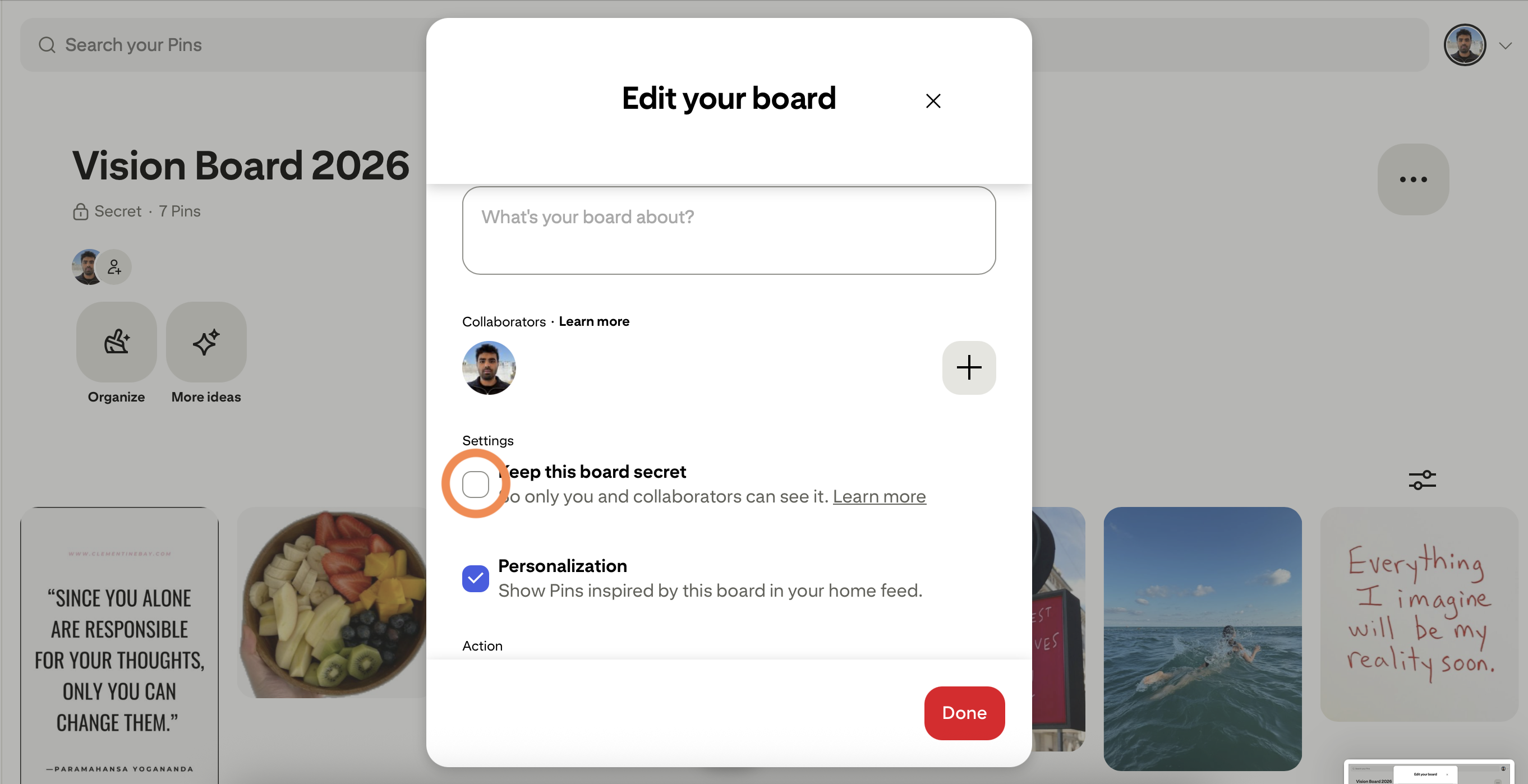 Pinterest doesn't let third-party apps access private boards directly. Here's a quick workaround that takes about 30 seconds.